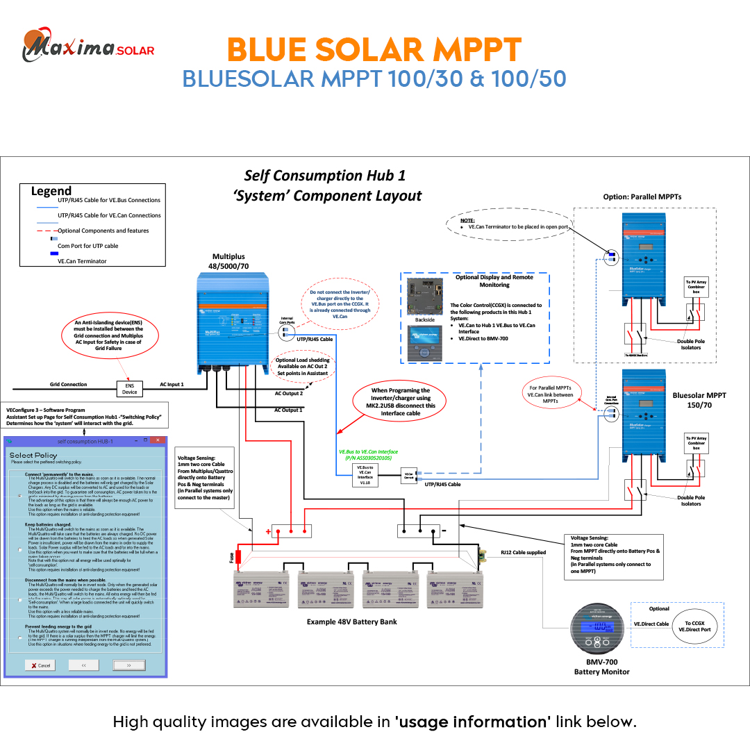 The charge controller comes with a port to connect and communicate with other Victron products for central monitoring and control.