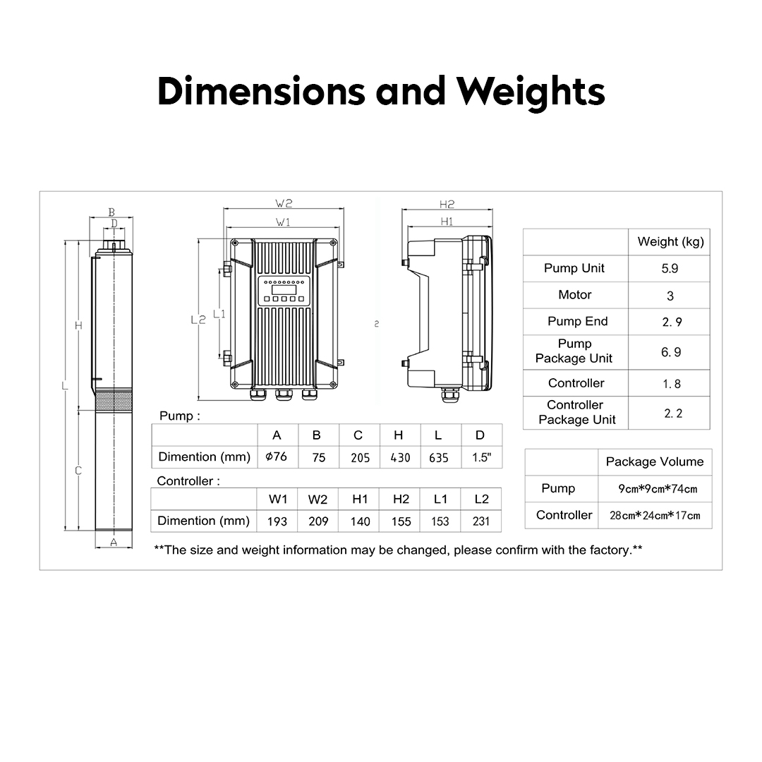 Designed specifically for solar applications, the pump operates exclusively on DC power, making it fully compatible with solar panels and battery systems. The integrated display provides real-time readings of voltage, current, power, RPM, and controller temperature, allowing users to monitor performance easily and make informed decisions.