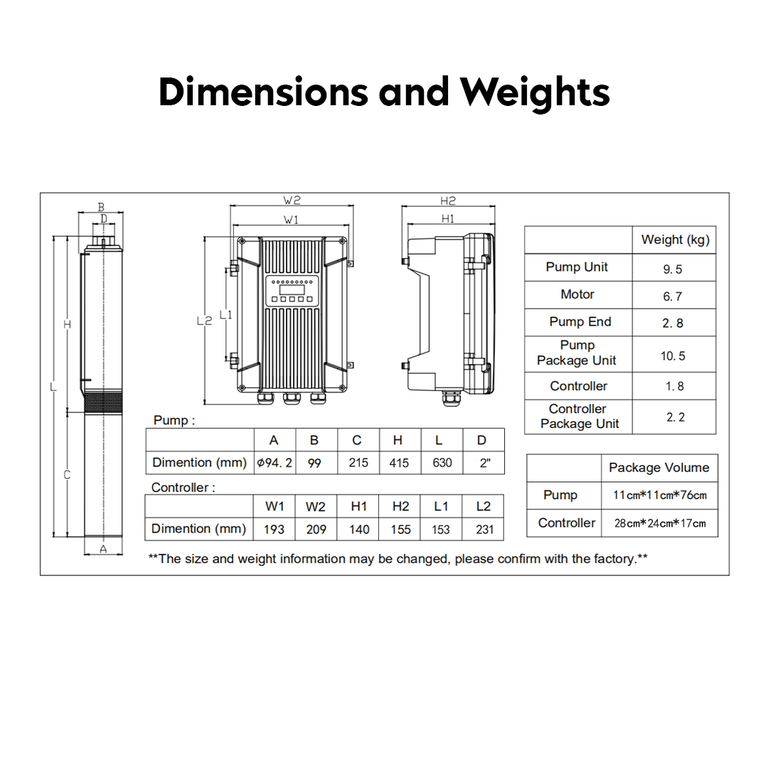 Designed specifically for solar applications, the pump operates exclusively on DC power, making it fully compatible with solar panels and battery systems. The integrated display provides real-time readings of voltage, current, power, RPM, and controller temperature, allowing users to monitor performance easily and make informed decisions.